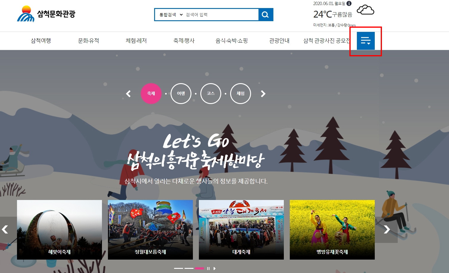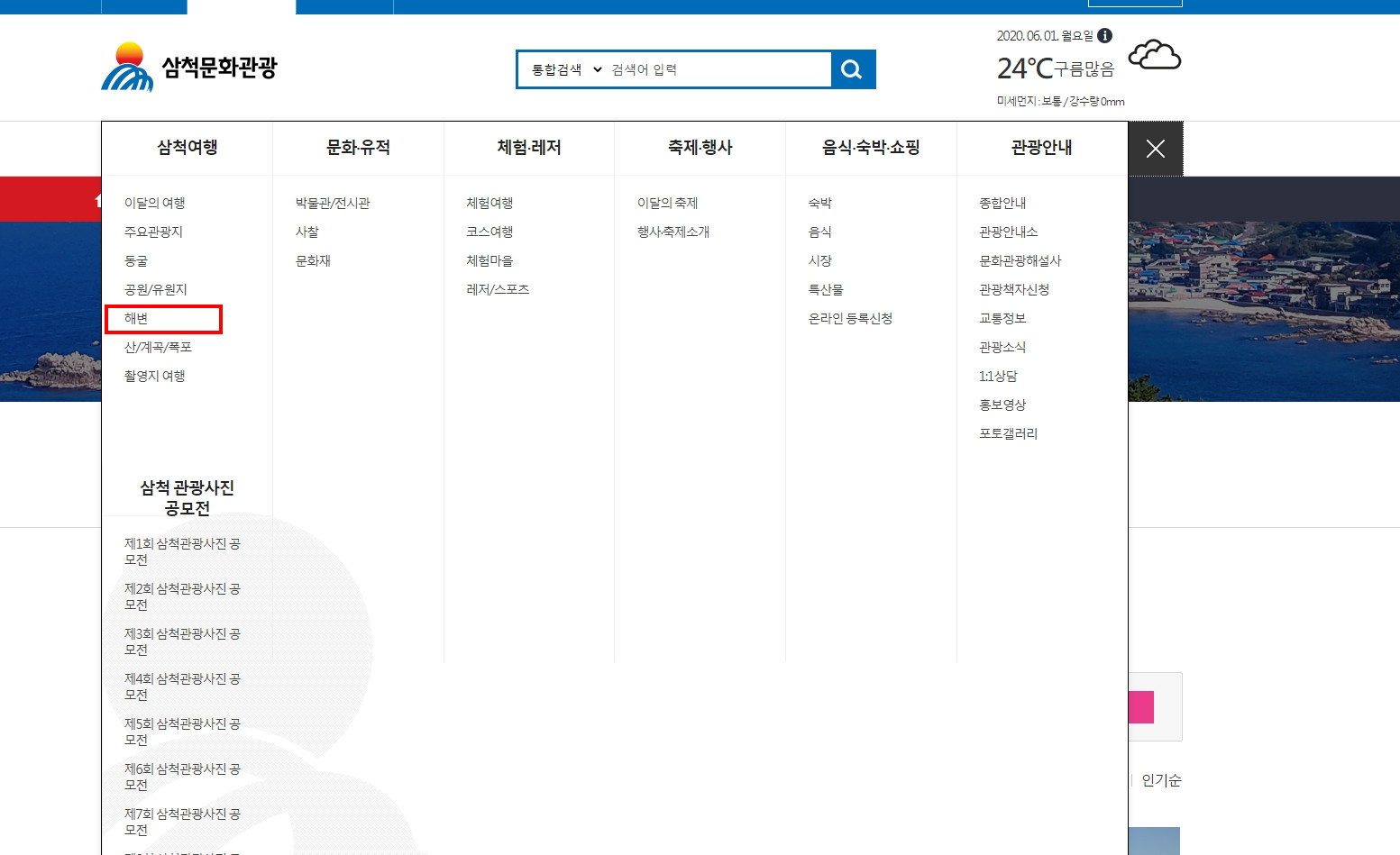 화면 오른쪽 '삼척문화관광'을 누르면,